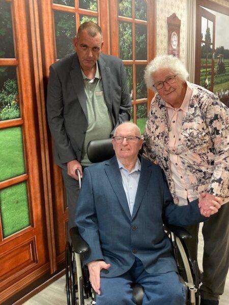 Marretje (Mar) en Kees van ’t Hof-Kroon trouwden 60 jaar geleden in Amsterdam. Mevrouw is geboren in Amsterdam, meneer in Rotterdam. Ze woonden 30 jaar lang met veel plezier in Westmaas, maar nu wonen ze in Zuid-Beijerland. Meneer van ’t Hof kwam vroeger voor zijn werk veel in de Oostbloklanden. De verschillen tussen toen en nu zijn hem erg opgevallen tijdens latere vakantietripjes. Het echtpaar had een gezamenlijke passie, namelijk stijldansen. Dit deden Mar en Kees altijd erg graag en liefst zo vaak mogelijk. Het gezin Van ’t Hof is de afgelopen decennia uitgebreid met 3 kinderen en 5 kleinkinderen.