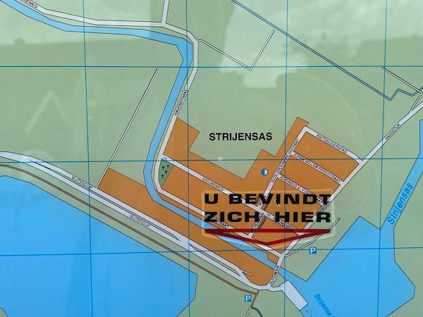 Om blijk te geven van extra dienstbaarheid, zijn er vier plattegronden aan toegevoegd, t.w. van Numansdorp, van Klaaswaal, van Strijen en hoera, van Strijensas zelf. Daarbij ook nog een gecombineerd stratenregister van al deze plaatsen, waar je verder niks mee kunt maar wat er heel informatief uitziet. Ook is er, kennelijk uit vrees dat de argeloze passant die het bord raadpleegt niet weet waar hij zich bevindt, bovenop de plattegrond van Strijensas aan toegevoegd: U STAAT HIER, waarbij HIER heel Strijensas kan zijn. Inmiddels heeft menig wandelaar zich er al uren aan staan te vergapen, vermoedelijk met stomheid geslagen dat hij daadwerkelijk STAAT waar hij STAAT en daar zo verbouwereerd over is dat hij aan de grond genageld STAAT en er niet meer weg kan komen. Er is sprake van een heuse wandelfile.