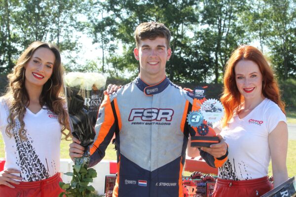 “Het is mijn eerste jaar, een leerjaar. Om dan zo’n resultaat te behalen… Dat is hartstikke mooi.” Kevin kon het maar amper geloven. Zeker gezien zijn verre van optimale zaterdag. “Toen liep het nog voor geen meter. In de kwalificatie was ik tiende. Ik wil de kart het liefst op de vuilnisbelt kieperen. Maar een dag later heb ik opeens het licht gezien. Het begon ineens te lopen.”