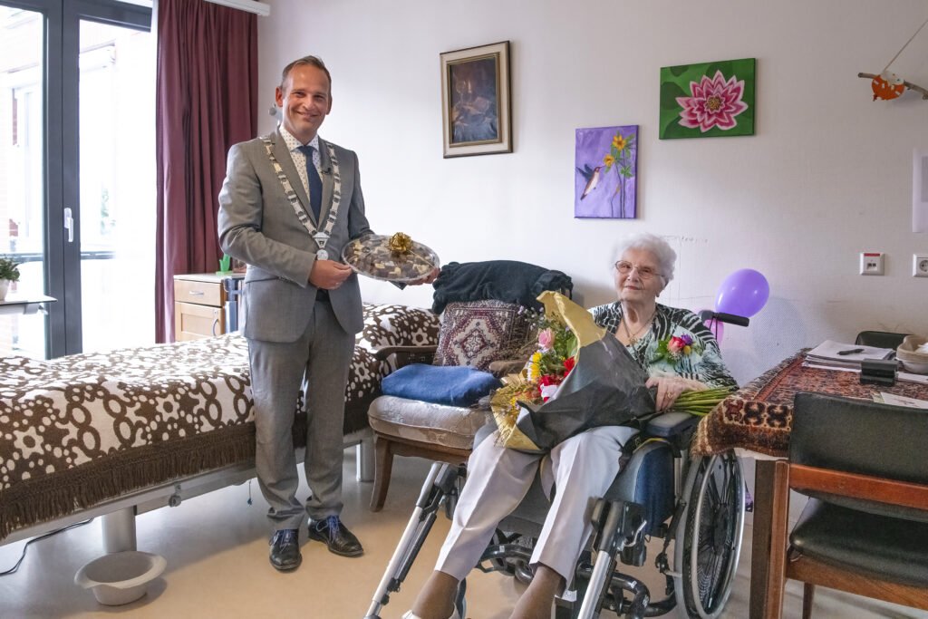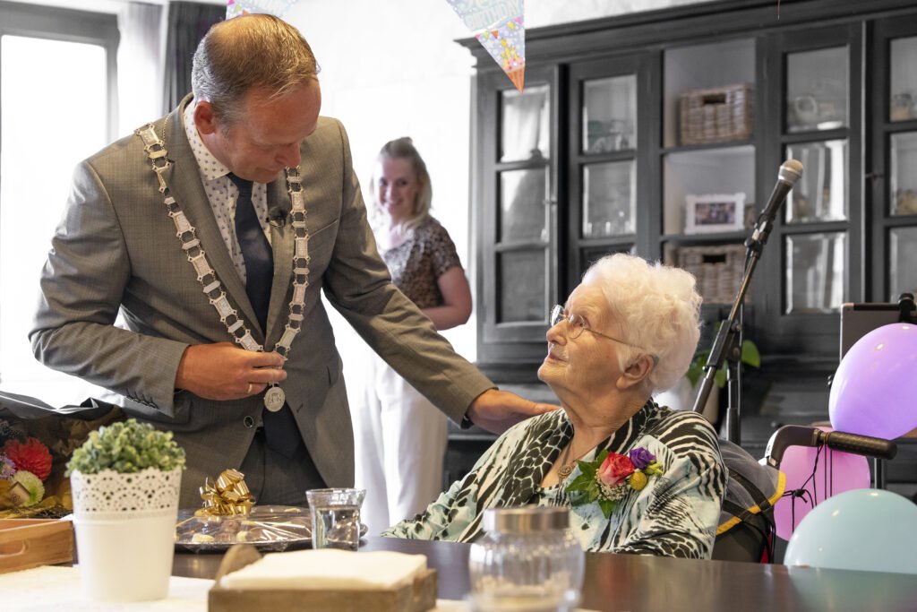 Vandaag is mevrouw Vos-Vermeer uit Puttershoek jarig. En ze is niet zomaar jarig, vandaag viert ze dat ze 107 jaar geleden op 28 augustus 1914 ter wereld kwam. Ze is en blijft daarmee de oudste inwoner van de Hoeksche Waard. Burgemeester Bram van Hemmen ging namens het gemeentebestuur op visite en nam een mooie bos bloemen en 107 bonbons voor haar mee. Ook had hij gezorgd voor wat muzikale omlijsting die mevrouw toezong voor haar verjaardag.