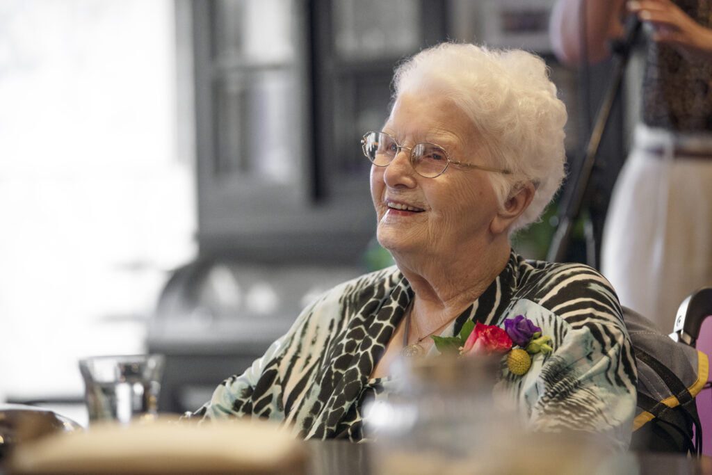 Mevrouw Vos-Vermeer woont sinds 10 jaar in ‘t Huys te Hoecke in Puttershoek. Ze is nog redelijk goed van geest, maar helaas gaan haar gehoor en zicht wat achteruit. Ze houdt van schilderen, bingo en bloemschikken. Ook geniet ze enorm van de bezoekjes van de kinderen en (achter)kleinkinderen. Gelukkig is dat nu weer mogelijk. Ze miste deze bezoekjes heel erg toen dit niet kon vanwege de coronamaatregelen.