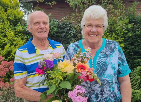 Piershil – Dinsdag 31 augustus was een feestelijke dag voor het echtpaar Van der Heiden-van ‘t Hof uit Piershil. Ze vierden namelijk hun 60-jarig huwelijk. En dus werden zij, namens het gemeentebestuur, telefonisch gefeliciteerd door dorpswethouder Joanne Blaak. Natuurlijk kregen zij ook een feestelijke bos bloemen thuisbezorgd.