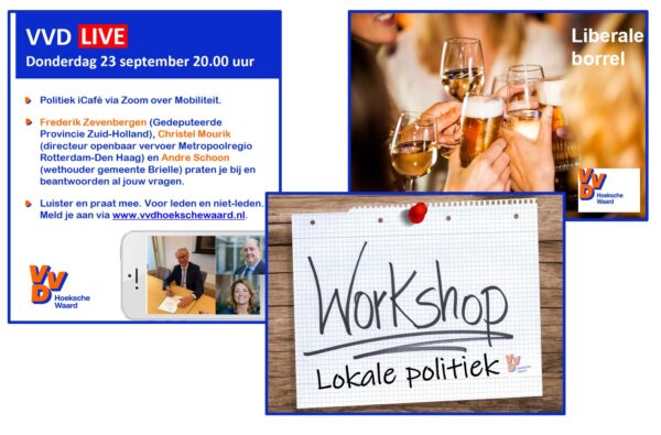 Hoeksche Waard – In september organiseert de VVD Hoeksche Waard een aantal activiteiten om de lokale politiek meer zichtbaar te maken. Op vrijdag 17 september 2021 van 17.00 uur tot 19.00 uur wordt gestart met een oude traditie en vindt er weer een liberale borrel plaats. Later in de maand worden een onlinebijeenkomst over mobiliteit en een workshop over gemeentepolitiek gehouden.