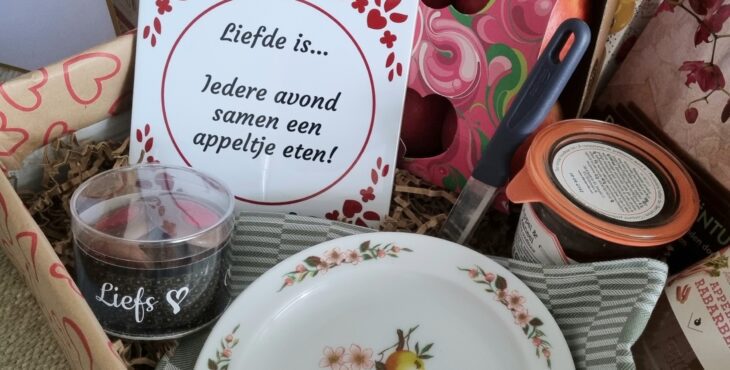 De familie is inmiddels flink gegroeid. Het echtpaar heeft 12 kleinkinderen, 5 achterkleinkinderen en er is nog een achterkleinkind op komst. Naast de vele felicitaties in de vorm van kaarten, bloemen en cadeaus, ontving het echtpaar nog een heel toepasselijk cadeau. Een tegeltje met daarop: ‘Liefde is … iedere avond samen een appeltje eten!’ met daarbij 2 bordjes (met appeltjes erop), een schilmesje en natuurlijk een paar appels. Al jarenlang eet het echtpaar namelijk elke avond voor het slapengaan nog een appeltje. En al die jaren worden deze appels met veel liefde door meneer Priem voor zijn Adrie geschild.