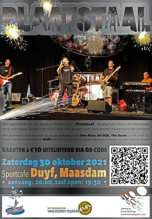 Maasdam – 30 oktober komt Coverband Plaatstaal een feestje maken in Sportcafé Duyf, Fazant 3 Maasdam.