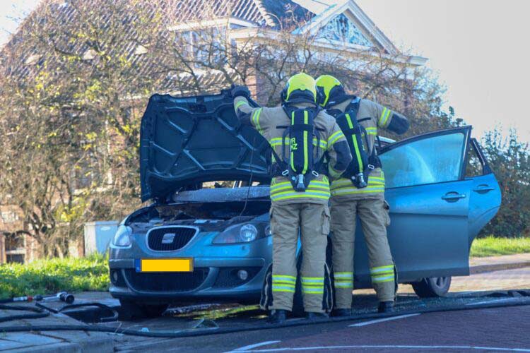 De brandweer heeft de ruiten van de personenauto ingetikt om de brand te kunnen blussen. Door de brand is de auto voor een groot deel verwoest.