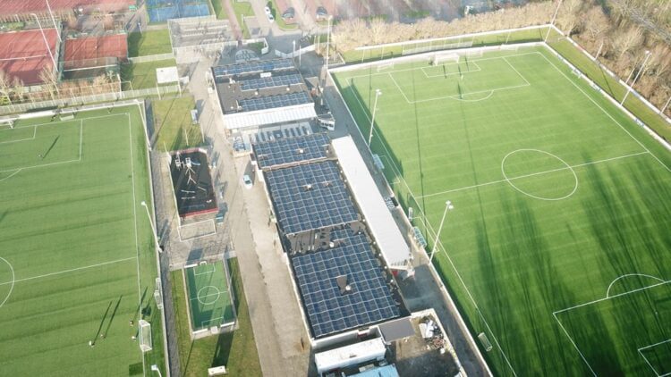 Op het dak van de kantine en de kleedkamers van v.v. SHO liggen nu 485 zonnepanelen. Duurzaam en van bovenaf ook een mooi gezicht laat het bestuur van de club uit Oud-Beijerland weten.