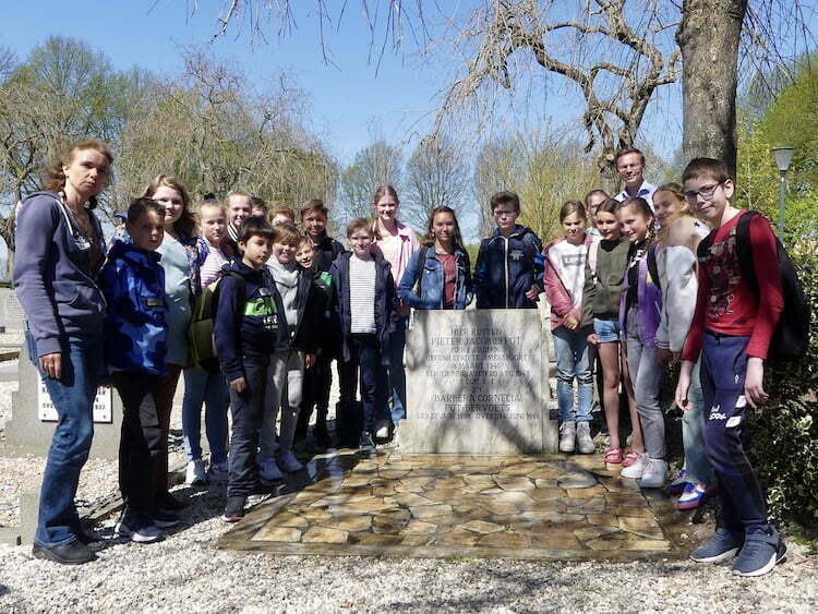 Zo’n 26 kinderen uit groep 7 en 8 van CBS De Vliet bezochten op donderdagmiddag 21 april het graf van verzetsstrijder Pieter Pot op de algemene begraafplaats in Klaaswaal. De basisschool adopteerde het graf in 2017 en maakt het ieder jaar schoon. Het idee van de adoptie ontstond na de publicatie van het boek ‘Na 70 jaar stilte’. Kleinzoon Peter Pot schrijft in dat boek over zijn opa en zijn tragische dood.
