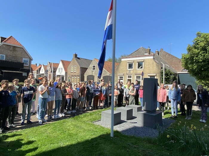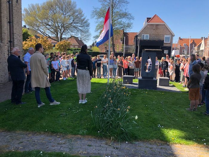 Donderdagmiddag 21 april stonden de leerlingen van De Vlashoek en De Weerklank en 2 leden van de Oranjevereniging, Rook Belder en Piet van der Mark, bij het oorlogsmonument op het kerkplein aan de Breestraat.Met elkaar werd stilgestaan bij de waarde van leven in vrijheid en de angst van leven in oorlog. Natuurlijk werd ook stilgestaan bij de oorlog in Oekraïne.