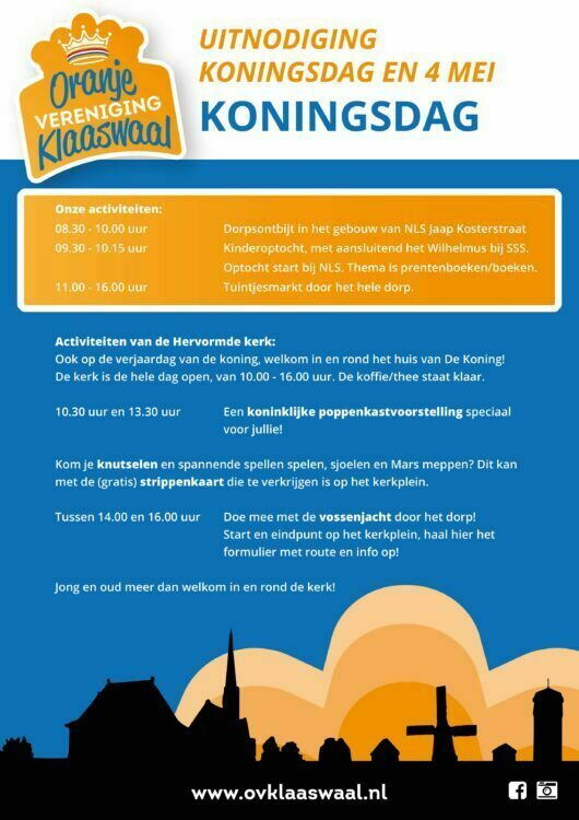 Op Koningsdag woensdag 27 april wordt er een bomvol programma gepresenteerd op het terrein van vv SSS Klaaswaal.