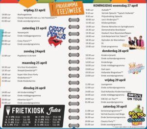 Het programma van Koningsdag in ‘s-Gravendeel is bekend met grote publiekstrekker Rene van Dalen en Helemaal Hollands.