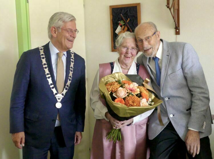 Strijen – Op dinsdag 10 mei 2022 was het precies 65 jaar geleden dat de heer A. (Arend) Mandemaker (88) en mevrouw P. (Nel) Mandemaker-van Tol (85) uit Strijen in het huwelijksbootje stapten. Burgemeester Aptroot feliciteerde het echtpaar vandaag namens het gemeentebestuur met hun prachtige huwelijksjubileum en bracht een mooi boeket bloemen en het ingelijste gedicht ‘Tweezaamheid’ van de dichter van de Hoeksche Waard, Rick Jan Hitzerd mee.