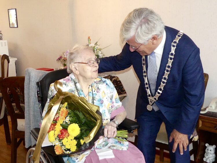 Op 26 mei 2022 vierde mevrouw M.J.(Marie) Vermaas-van ‘t Hof uit Puttershoek haar 100ste verjaardag. Burgemeester Aptroot feliciteerde de eeuweling vandaag, 1 juni, namens het gemeentebestuur met deze prachtige mijlpaal. Hij bracht een mooi boeket en 100 bonbons mee.