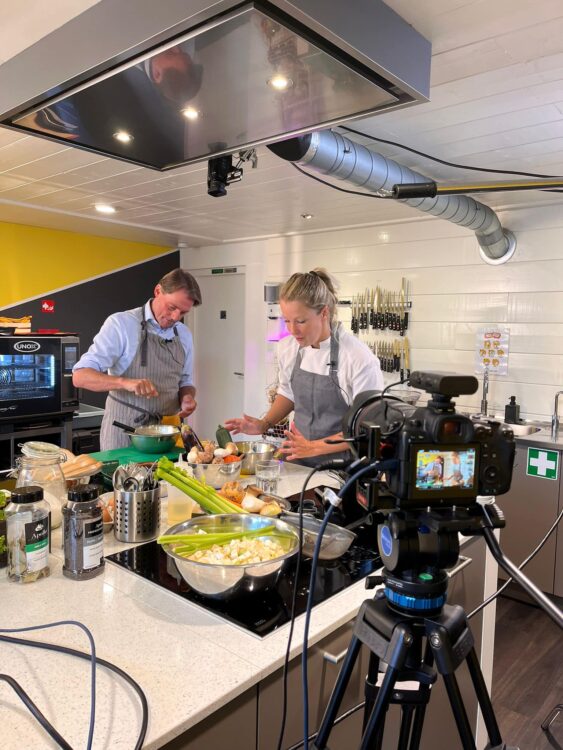 Michka Chel van Kookstudio Hoeksche Waard gaf vandaag een inspirerende kookworkshop met tips over hoe je voedselverspilling kunt tegengaan en hoe je smaken lekker kunt combineren. Wethouder Paul Boogaard mocht haar vandaag assisteren als hulpkok bij de bereiding van broodpudding, bouillon, gepofte groentes uit de oven en mayonaise .