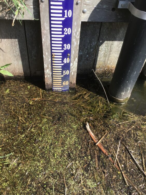 Dat is een groot probleem waardoor de waterkwaliteit de komende jaren zal verslechteren. Door klimaatverandering neemt ook de watertemperatuur toe. Nu is het gemiddeld al 2 graden warmer. Door te weinig diepte is de weerbaarheid van het watersysteem beperkt. Steeds meer sloten groeien dicht met kroos met als gevolg gebrek aan zuurstof en sterfte. Peilverhoging kan een oplossing zijn, maar tot op heden kan dat op verzet rekenen vanuit de landbouw. En er is nog een probleem