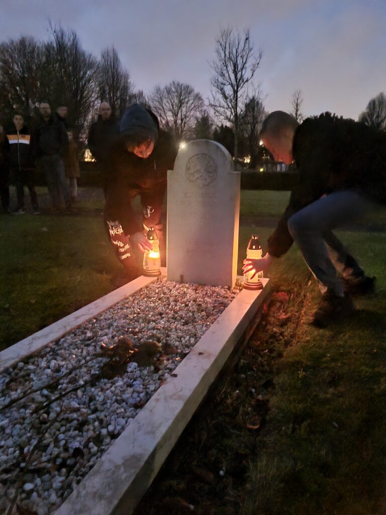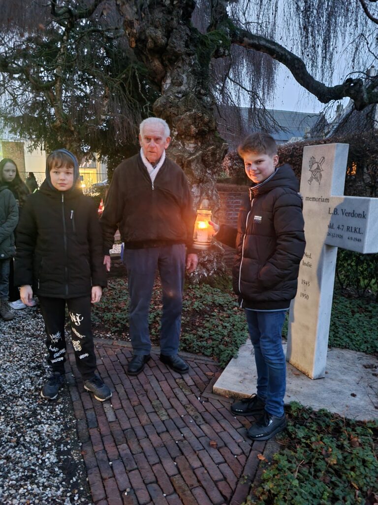 Hierna werden er door de kinderen lichtjes geplaatst bij de verschillende oorlogsgraven. Na een stilte moment werd er naar de Algemene begraafplaats aan de Maasdamseweg gewandeld alwaar ook twee lichtjes werden geplaatst bij het oorlogsgraf van dhr. Verdonk, die hier een aantal jaar geleden is herbegraven.