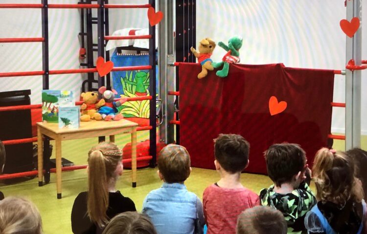 Piershil – Vandaag zijn we op school gestart met een leuke verrassing rond de jaarlijkse Voorleesdagen. Zowel de peuters van ’t Hummeltje als de leerlingen van ’t Kraaienest hebben genoten van een poppenkastvoorstelling in het speellokaal rond het boek ‘Kikker is verliefd!’