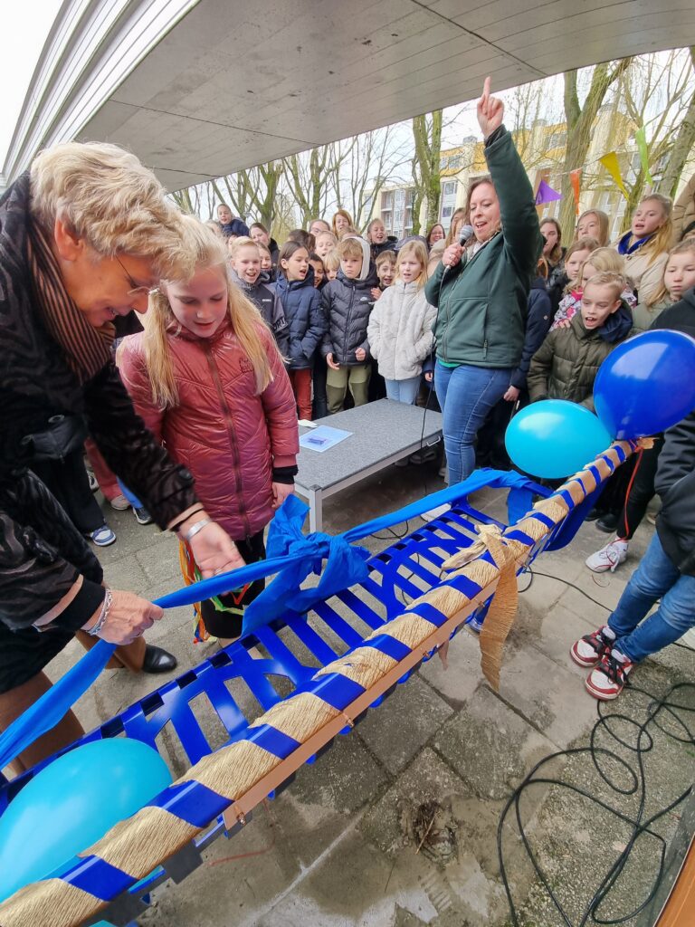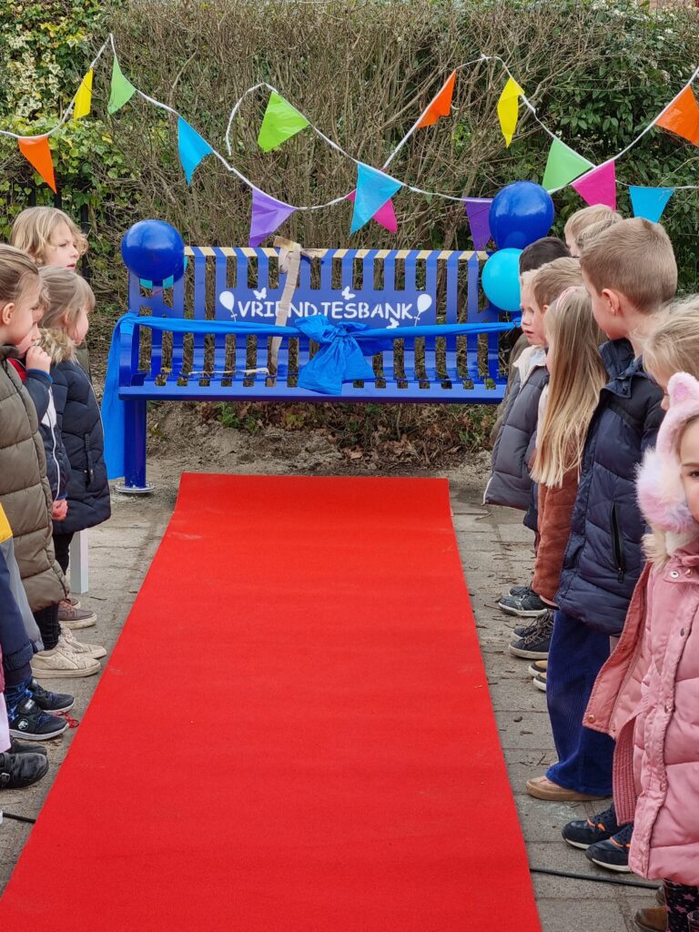 “Ik had vroeger een vriendinnetje waar ik altijd mee speelde. Maar als ze dan ziek was, wist ik niet met wie ik toen moest spelen. Nu kan ik op zo’n mooi vriendenbankje gaan zitten en kunnen andere kinderen vragen of ik mee kom spelen. Een prachtig idee want alle kinderen moeten heerlijk met elkaar kunnen spelen”.