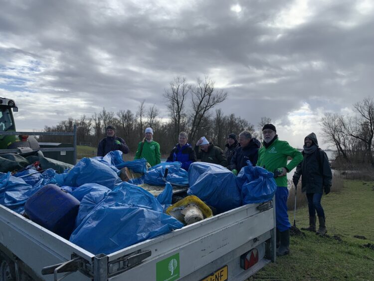 Water Natuurlijk hielp Sportvisserij Zuidwest Nederland bij de landelijke actie om de waterkant schoon te houden. Met deze actie “Vang5” stimuleert de sportvisserij leden om minimaal 5 stuks of 5 minuten zwerfvuil op te ruimen bij een visstek. Dat bracht vrijwilligers van beide organisatie samen aan de oever van het Hollands Diep. Een paar uurtjes opruimen leverde een wagen vol afval op. Voldoening bij de vrijwilligers maar ook ergernis over zoveel rotzooi in de natuur. Bijna allemaal plastic verpakkingsmateriaal. Onverteerbaar. Staatsbosbeheer zorgde voor een verantwoorde afvoer van deze vracht troep.