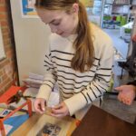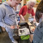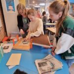 Op De Bouwsteen namen ze een eigen drukkerijtje mee: kinderen maakten een eigen ontwerp met structuur (bv. ribbelkarton of behang) en maakten daarvan een afdruk onder de pers zodat er a.h.w. reliëf te zien was. Bij letters moesten ze er natuurlijk rekening mee houden dat die in spiegelbeeld afgedrukt zouden worden. Een creatieve en inspannende opdracht!