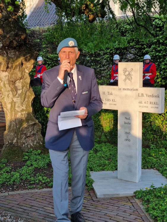 Na een indrukwekkend en persoonlijk verhaal van de burgemeester werd een zelfgeschreven gedicht voorgelezen door een leerling uit groep 7. Daarna gingen alle aanwezigen naar de oude begraafplaats. Na de twee minuten stilte en het Wilhelmus deed veteraan Aloys Bijl vooral een beroep op de jeugd om de vrijheid te koesteren en niet bezig te zijn met pesten!Hierna werden kransen en bloemen gelegd waaronder dus bij het Indië monument.