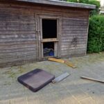 Het afgelopen Hemelvaartweekend was een triest dieptepunt waarbij de deur van een opbergschuur het moest ontgelden met als gevolg dat ook de nodige speelmaterialen werden vernield. Ramen met stenen in gegooid, speelmaterialen besmeurd of kapot gemaakt, eieren tegen ramen gegooid en een hoop vuilnis en glas op het plein achtergelaten.