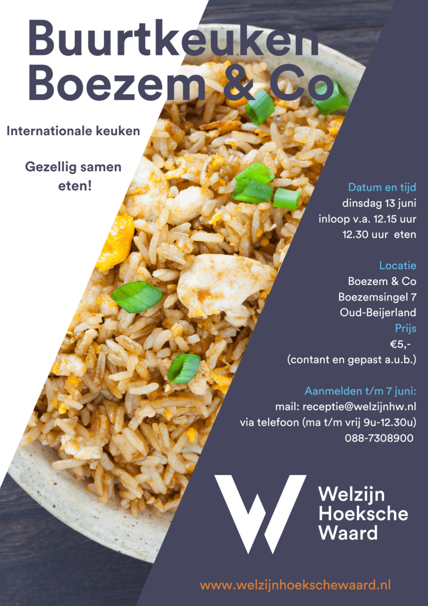 Na het grote succes van de vorige keer organiseert Welzijn Hoeksche Waard samen met vrijwilligers weer een Buurtkeuken in Boezem en Co. 13 juni wordt er weer een heerlijke Syrische lunch gekookt!