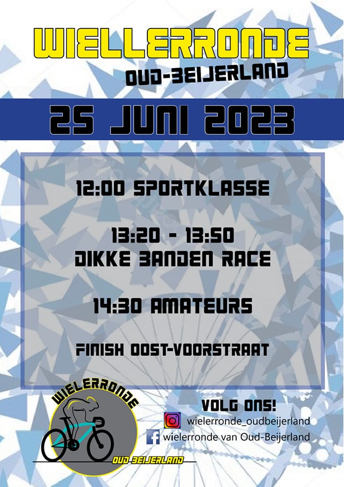 Zondag 25 juni zullen de sportklasse in actie komen en daarna laten de kinderen uit de Hoeksche Waard zien of zij het nieuwe talent zijn van Nederland, in een dikke banden race waarvoor je kan aanmelden via [email protected] ! Deze sportieve dag wordt afgesloten met de amateurs als hoofdprogramma! Voor de sportklasse een dubbel verhoogd prijzenschema en premies. Voor de amateurs extra premies en superpremies!