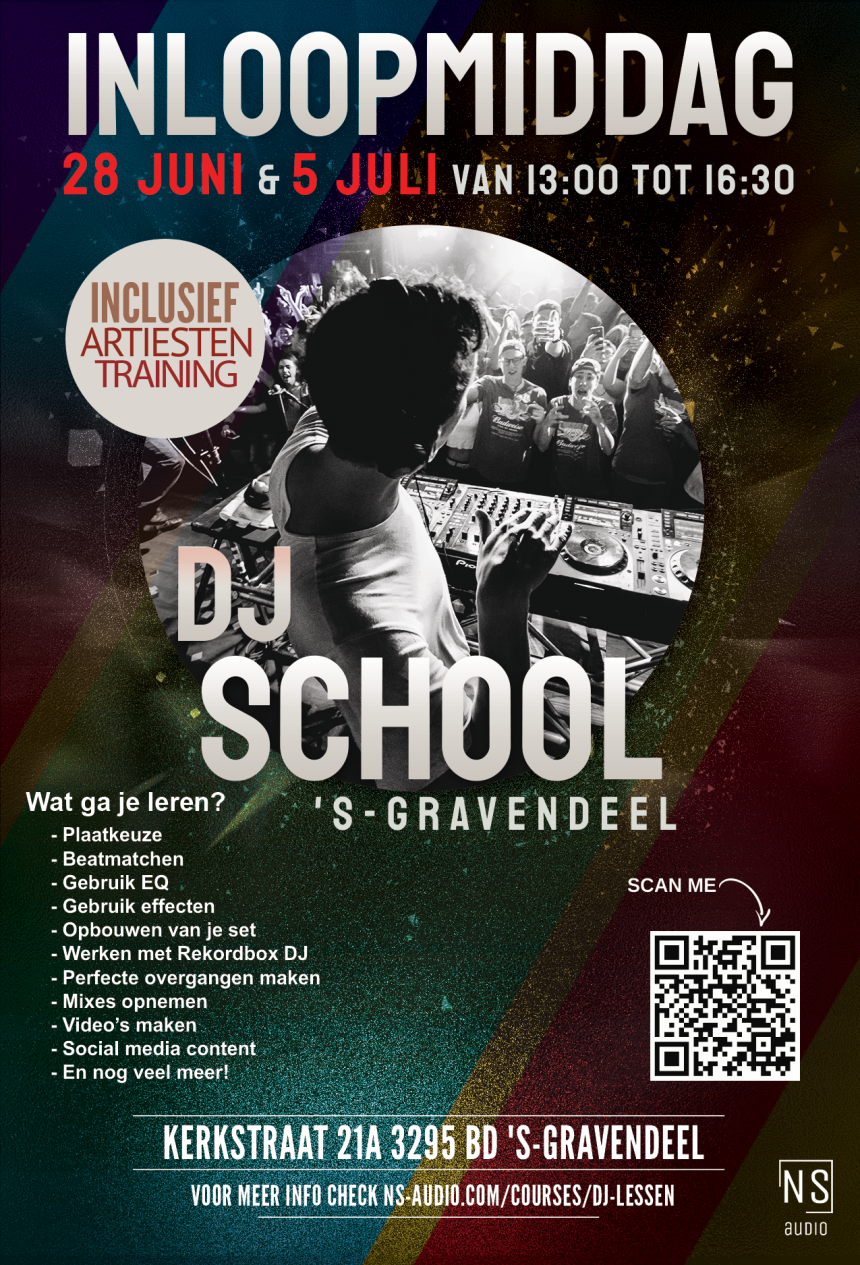 Kom gezellig langs tijdens onze inloop dagen voor meer informatie voor dj lessen! Ook te vinden via: https://ns-audio.com/courses/dj-lessen/
