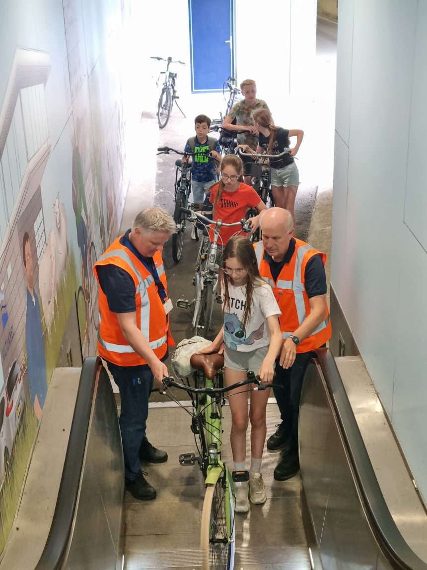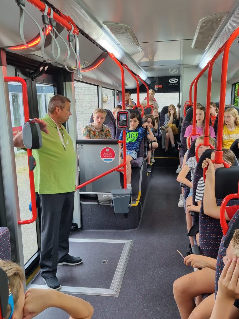 In de middag fietsten de kinderen door de Kiltunnel en oefenden ze in het gebruik van de roltrappen. Het Wegschap tunnel Dordtse Kil zorgde voor een heerlijk, ijskoud tussendoortje. Daarna werd er in een waterstofbus uitleg gegeven over het OV door Sjaak en Mario. Het was de laatste officiële dag van Sjaak want hij gaat met pensioen. Met Mario achter het stuur werd nog een rondje gereden door het dorp.