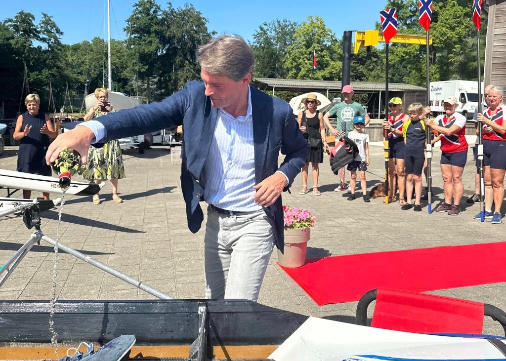 Vandaag was het jubileumfeest bij de vereniging en mocht wethouder Boogaard onder zomerse omstandigheden de nieuwste aanwinst van de roeivereniging officieel ten doop houden ‘De Zevenklapper’ werd uiteraard gedoopt met water uit de ‘eigen’ Binnenmaas.🍾