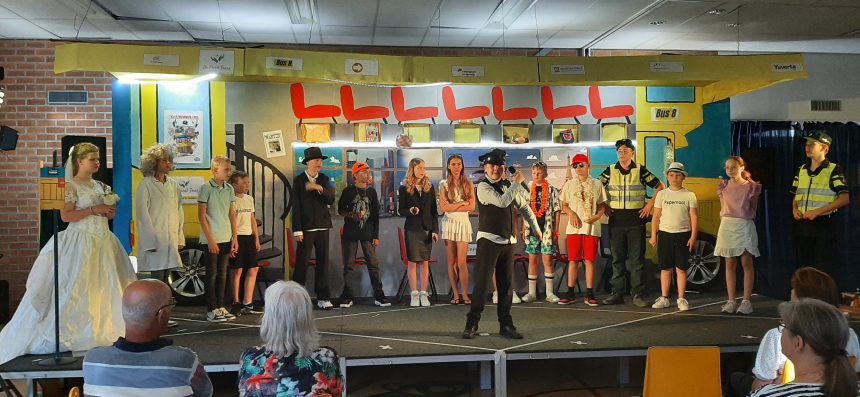 Maandag en dinsdag nog verder optreden en komende dinsdagavond de officiële afscheidsavond van onze groep 8 met de superleuke musical Alle remmen los!