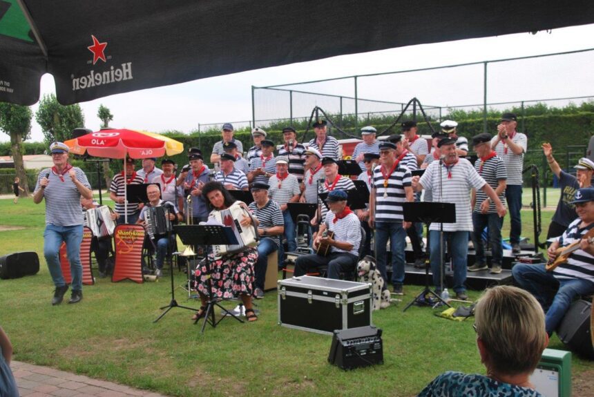 Dus had dirigente Paula van Wanrooy heel democratisch met haar bemanning overlegd en die vonden het wel wat.Dus busje geladen en op weg naar Numansdorp. Na een aantal optredens buiten de Hoeksche Waard de afgelopen maanden was het nu bijna een thuiswedstrijd. Voor uw redacteur in ieder geval wel. Die woont in het dorpje aan de rivier. Maar goed, terug naar de realiteit van de dag. Het was gezellig druk op Camping ’t Volgerland en het weer werkte ook weer mee. Na de recente periode met veel regenbuien was het nu heerlijk zonnig. Dus alles werd uit de kast gehaald om er een leuke middag van te maken. Dirigente/accordeoniste Paula van Wanrooy had er veel zin in. Ook deze keer herkende ze weer veel bekenden tussen het in groten getale opgekomen publiek. De veel gevraagde meezingers van het Shantykoor, zoals ‘Laat me lekker gaan’ en ‘C’est La Vie’ gleden er in zo glad als een paling.