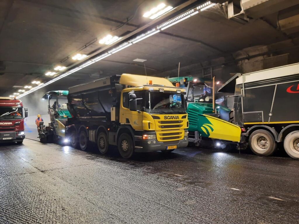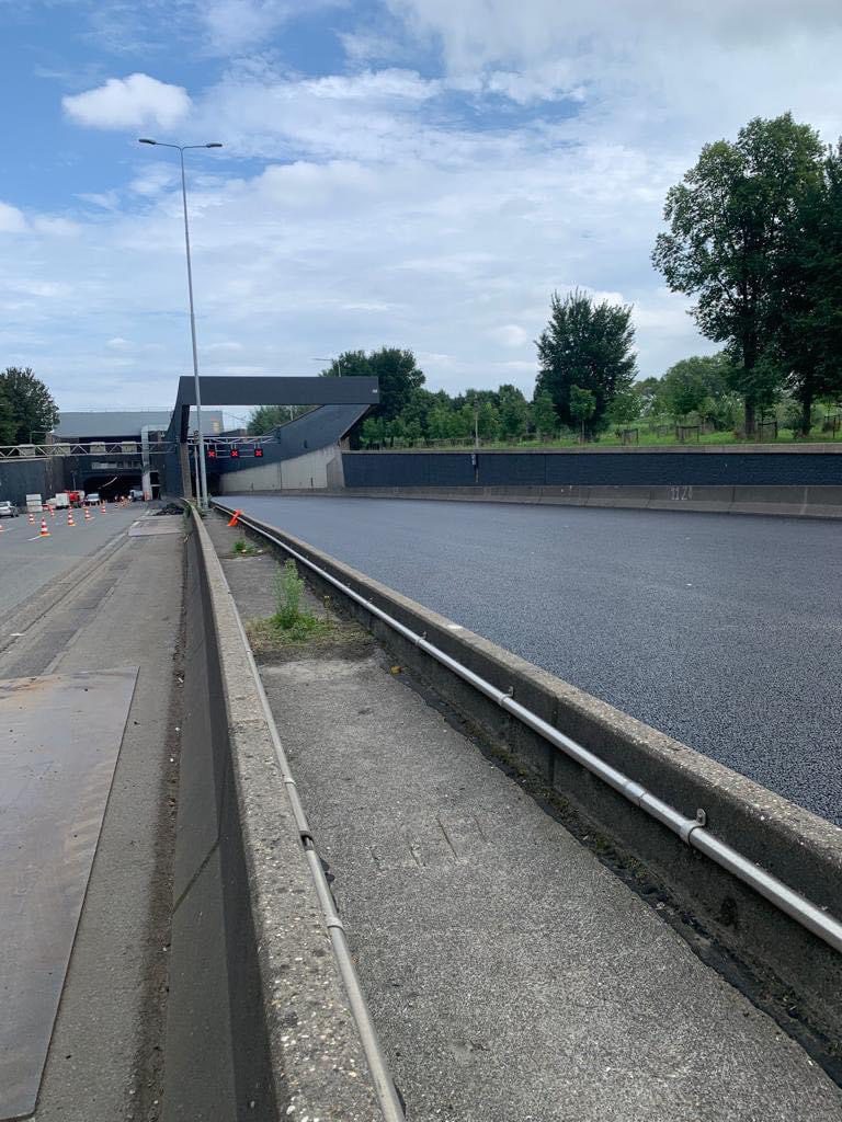 In het middentunnelkanaal ligt de afvoer voor het (regen)water in beton en kan volgende week de vloer erin. In de buis richting Rotterdam is nieuw asfalt aangebracht…afkoelen duurt met dit warme weer wel wat langer maar het ligt er mooi bij…de belijning volgt later. Lees ook: Vakantie voorbij? Bereid u goed voor het wordt nog drukker op de wegen! De Heinenoordtunnel en N59 zijn nog tot 1 september dicht