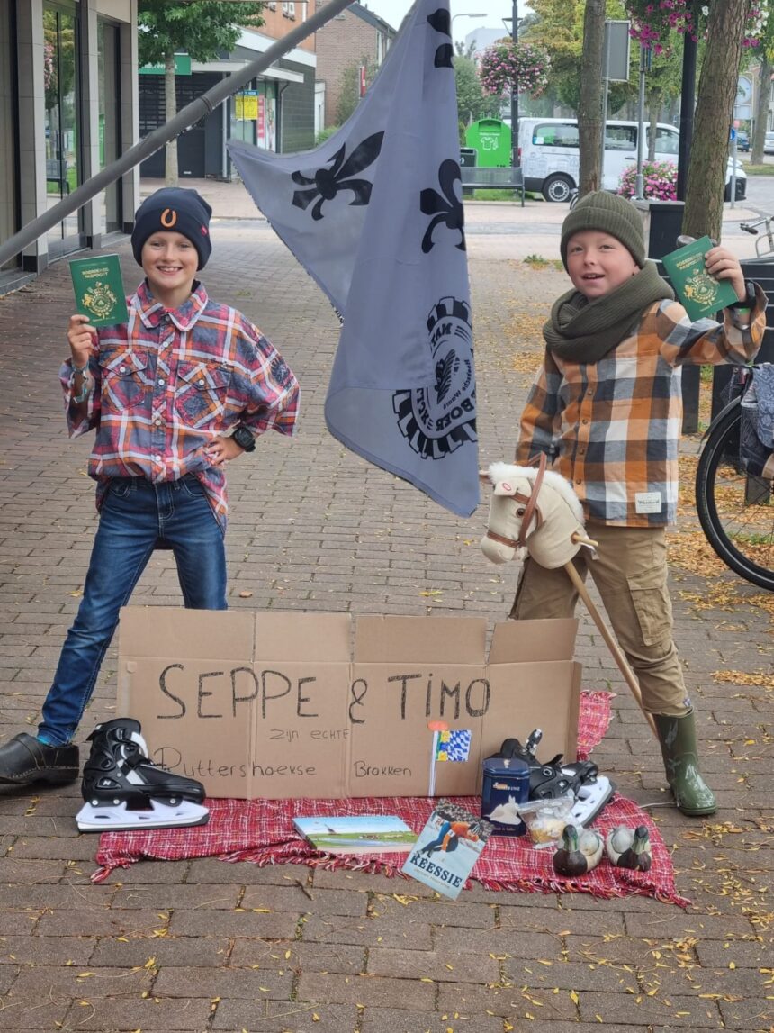 Deze Puttershoekse brokken Seppe Rijnberk en Timo Kortekaas hebben de vlag gevonden bij de bakker in Puttershoek.