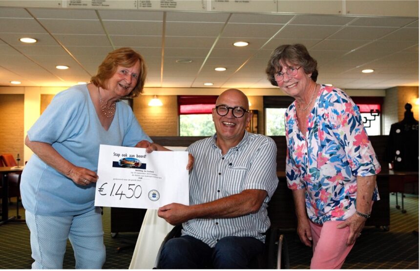 Na de wedstrijd was er een veiling en door de gulle gaven van vele sponsors brachten de dames het mooie bedrag van € 1.450,— bijeen. Peter van ’t Wout beheerder van het zeilcharterschip de Zeeland en zelf een rolstoelgebruiker, nam het bedrag in ontvangst.