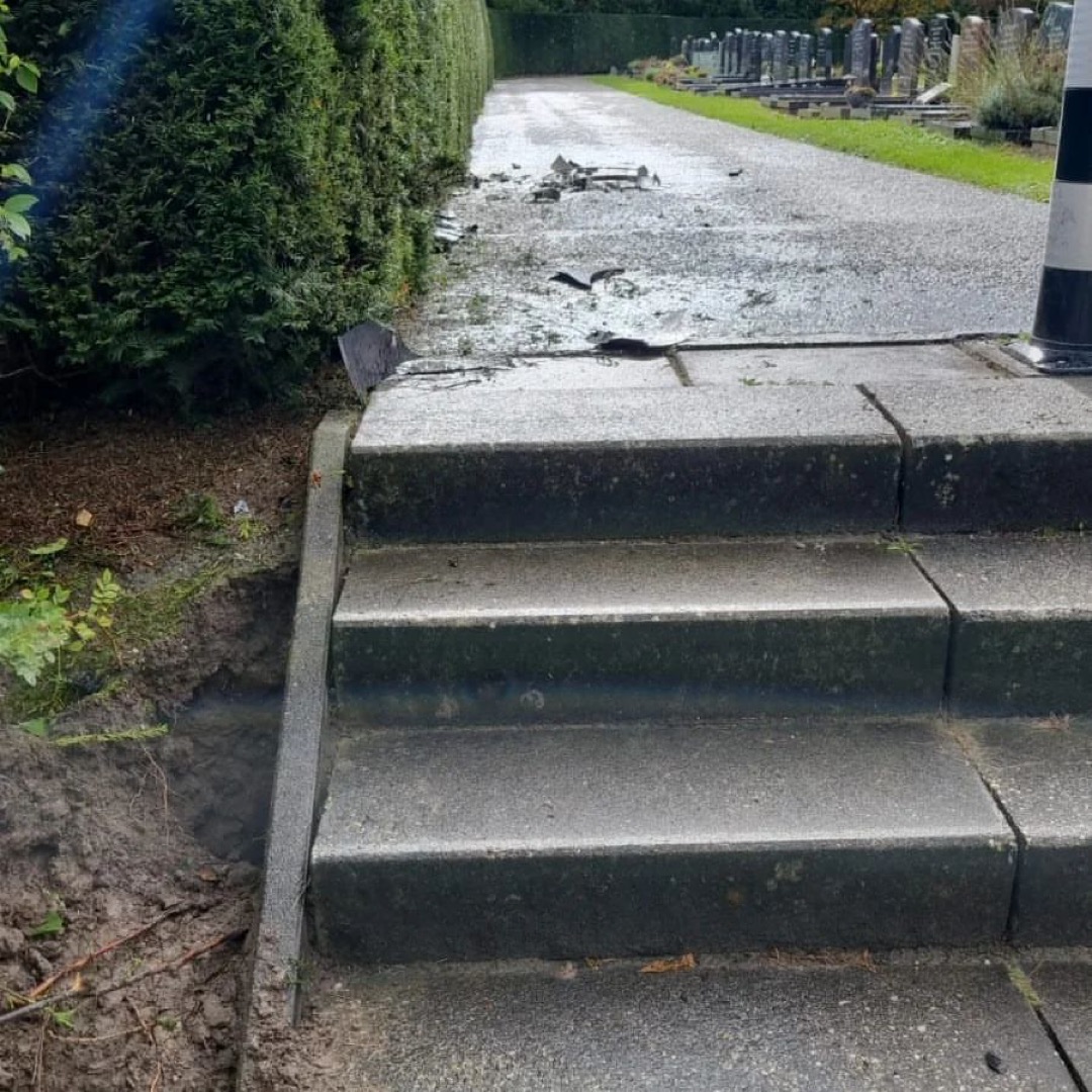 Puttershoek- een onbekend persoon heeft met een voertuig gecrosst op de begraafplaats in Puttershoek. Hierbij zijn beschadigingen veroorzaakt aan een urnen muur, een trap, het gazon en enkele goederen.