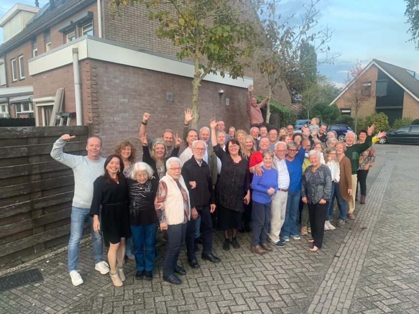 Het resultaat: Een onvergetelijke familie-reünie (bij Kees van Kees van Aart van Ebbertje) en Ine ( in t Veld-van Trigt.) te Numansdorp, met een internationaal tintje.