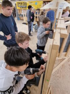 De kinderen werden door deze studenten en docenten begeleid bij bijvoorbeeld een brug bouwen, een Romaanse boogmuur in elkaar zetten, een vloertje leggen, plaatwerk schroeven of een vogelhuisje in elkaar zetten.