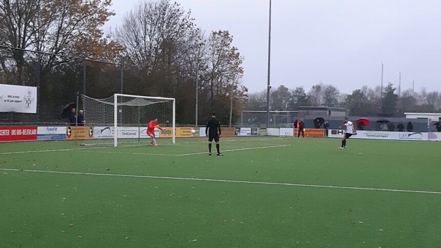Het eerste echt gevaarlijke moment van SHO leverde een corner op. Bij het nemen van de hoekschop werd Jesse Vermaat door Quinton Burk dusdanig gehinderd dat het voor scheidsrechter Van Elswijk voldoende was om naar de stip te wijzen. De jarige Kevin Angel (31) liet doelman Jarmo Hartgers kansloos: 1-0.