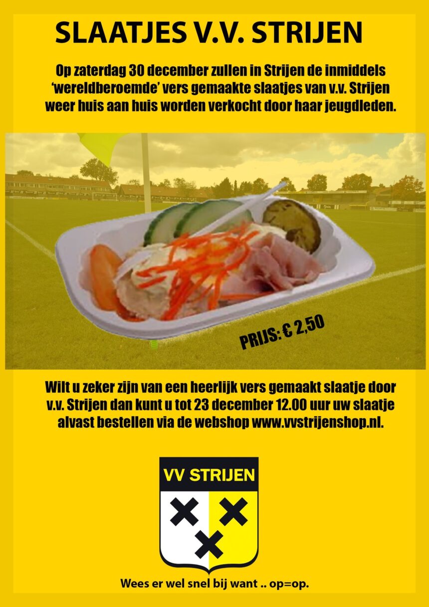 Wilt u zeker zijn van een heerlijk vers gemaakt slaatje door v.v. Strijen dan kunt u tot 23 december 12.00 uur uw slaatje alvast bestellen via de webshop www.vvstrijenshop.nl ![]()