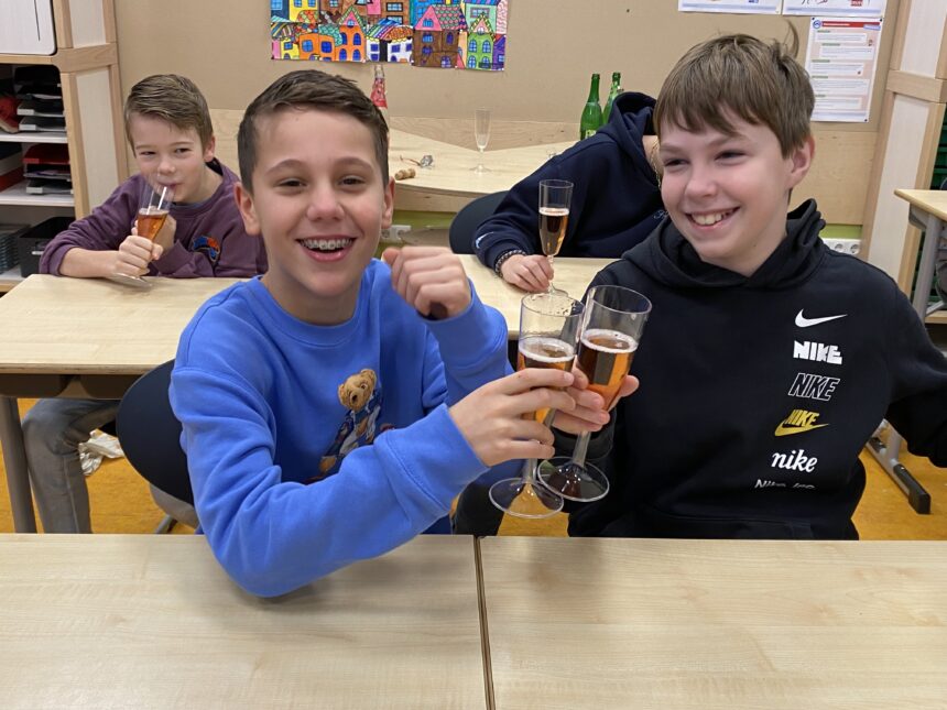 Westmaas – Op maandagmorgen 8 januari is in alle groepen van CBS De Weerklank uit Westmaas (kinder)champagne gedronken. Het was -na de kerstvakantie- de eerste schooldag in het nieuwe kalenderjaar: 2024.