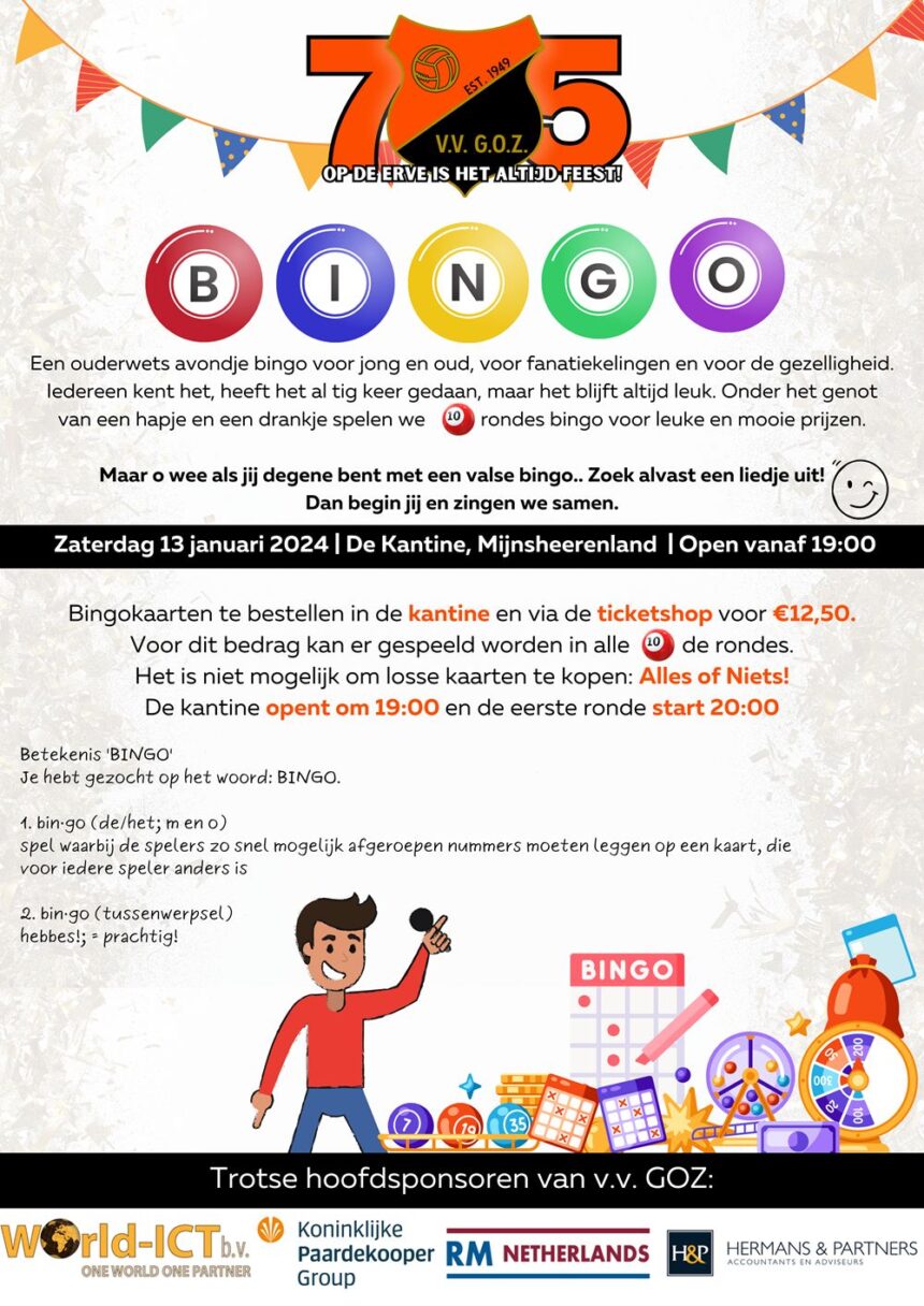 Een ouderwets avondje bingo voor jong en oud, voor fanatiekelingen en voor de gezelligheid. Iedereen kent het, heeft het al tig keer gedaan, maar het blijft altijd leuk. Onder het genot van een hapje en een drankje spelen we 10 rondes bingo voor leuke en mooie prijzen.