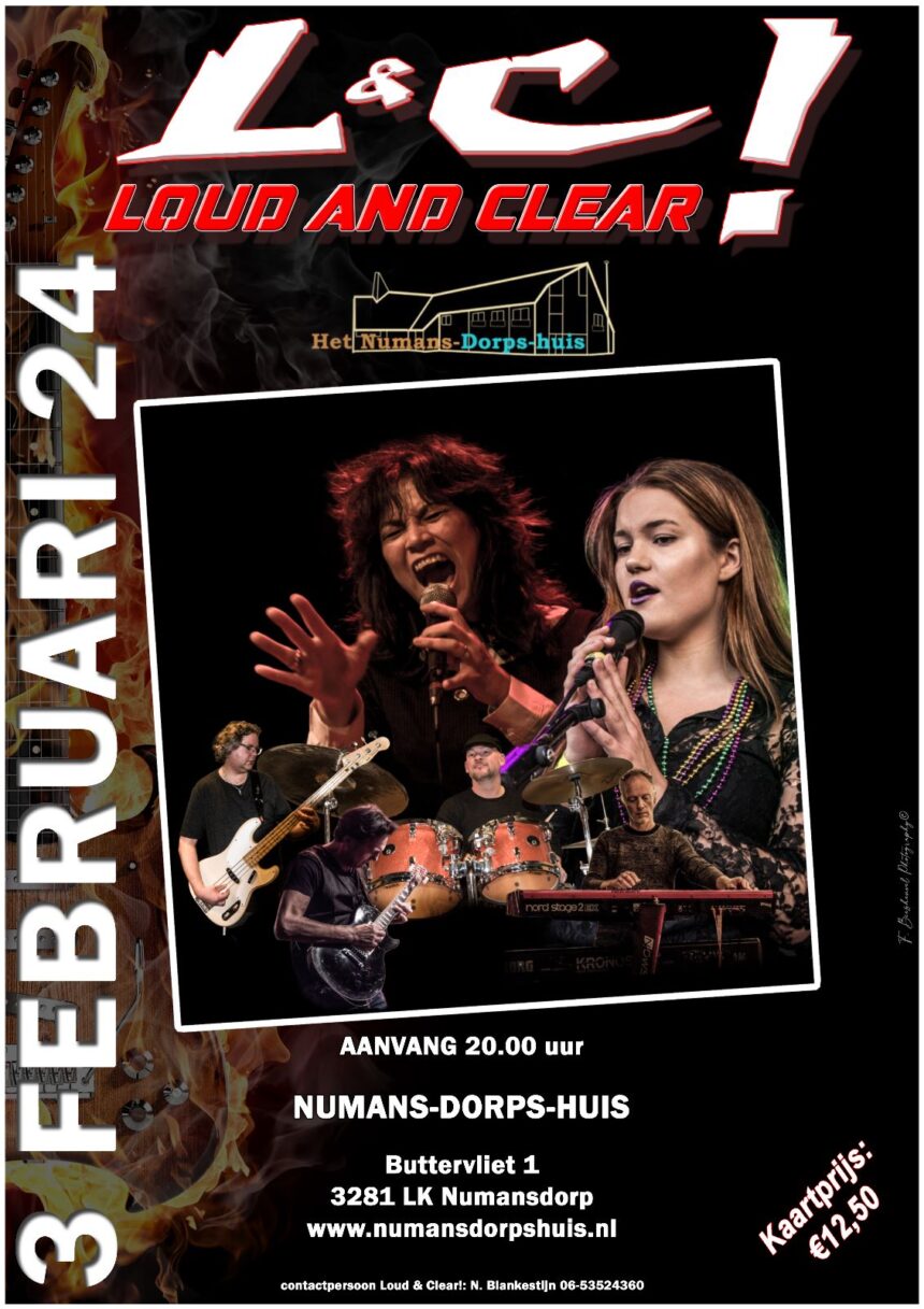 Loud & Clear! is een achtkoppige enthousiaste coverband, die een feest van herkenning ten gehore brengt. Covers van Tina Turner, Toto, Queen, Stevie Wonder, Guns ‘n’ Roses en vele anderen, Loud&Clear! laat ze horen. Zowel stevige nummers als mooie (rock)ballads komen voorbij. Ze spelen het dak eraf en nemen het publiek hierin mee.