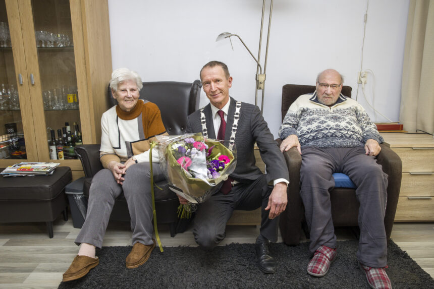 Op 14 januari waren meneer Han (85) en Ans van Dongen-van Herwaarden (82) 65 jaar getrouwd. Burgemeester Erik van Heijningen feliciteerde ze vrijdagmiddag 19 januari namens het gemeentebestuur met hun briljanten huwelijk. Voor deze speciale gelegenheid nam hij een mooi boeket bloemen mee.