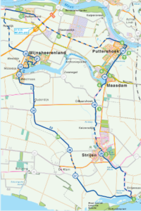 Deze fietsroute staat ook wel bekend als de Mijlpalenroute. De route is 43 kilometer en wanneer je deze volgt fiets je langs Strijen Sas, Strijen, Maasdam, Puttershoek en Mijnsheerenland. In de tijd van Napoleon diende deze route als postroute en kreeg toen de naam Route Départementale. Langs deze route staan meerdere 19e-eeuwse gietijzeren palen die zijn geplaatst door Rijkswaterstaat. Deze mijlpalen dienden als hulpmiddel voor wegenonderhoud en werden iedere kilometer en hectometer geplaatst. Er zijn nog veel van deze paaltjes bewaard gebleven en te bekijken tijdens deze fietsroute. Naast de mijlpalen zul je ook nog langs een aantal mooie bezienswaardigheden fietsen zoals de Hervormde Kerk van Cillaarshoek, Molen De Hoop en Museum Hoeksche Waard. Voor meer gedetailleerde informatie over deze fietsroute kunt u de website van Natuurlijk Hoeksche Waard bekijken: https://www.visithw.nl/nl/eropuit/alle-fietsroutes/1182655999/mijlpalenroute