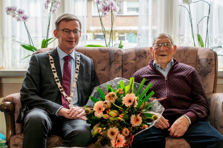 Hannes Vermoen is vandaag 101 geworden. Hij is de oudste man van de Hoeksche Waard. Vanmiddag feliciteerde locoburgemeester Harry van Waveren hem namens het gemeentebestuur met een mooie bos bloemen en een doos bonbons. Hannes geniet op deze dag van alle aandacht. En al is hij over de 100, met huishoudelijke hulp kan de geboren en getogen Hoeksche Waarder nog steeds zelfstandig wonen in ‘s-Gravendeel.