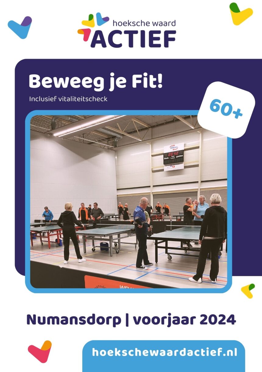 Voel jij je niet fit of wil je meer gaan bewegen? Doe dan mee met het beweegprogramma van Hoeksche Waard Actief! Het programma is speciaal voor 60+ers die (nog meer) willen sporten, opnieuw willen gaan bewegen of een nieuwe sport willen ontdekken. Het programma bestaat uit 10 weken sporten in groepsverband. Er zullen 5 verschillende sportaanbieders, 2 workshops geven. Plezier en gezelligheid staat voorop. Start van het beweegprogramma is woensdag 27 maart 2024 in sporthal Cromstrijen in Numansdorp.