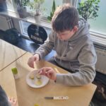 In de groepen 8 was een boerin uit Texel op bezoek die de kinderen vertelde over haar gemengd bedrijf met melkkoeien en pootaardappelen. De kinderen leerden over soorten aardappels, over de export, de grootte en over zetmeel. Ze zagen filmpjes over het hele proces van poten tot en met oogsten en deden proefjes om bijvoorbeeld het verschil te merken tussen rauwe en gekookte aardappel en wat zetmeel daarmee te maken heeft. En ze leerden wat zetmeel met onze sokken te maken heeft.