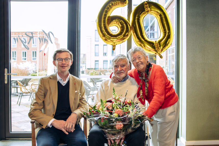 Op 31 maart waren meneer H.J. Nijssen (84) en mevrouw M. Nijssen-in ‘t Hout (84) 60 jaar getrouwd. Wethouder Harry van Waveren feliciteerde ze vanmiddag namens het gemeentebestuur met hun diamanten huwelijk. Voor deze speciale gelegenheid nam hij een mooi boeket bloemen mee.